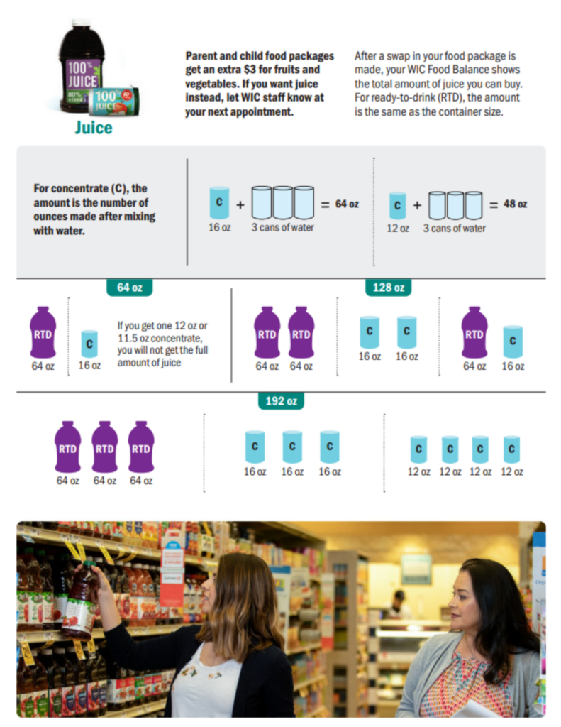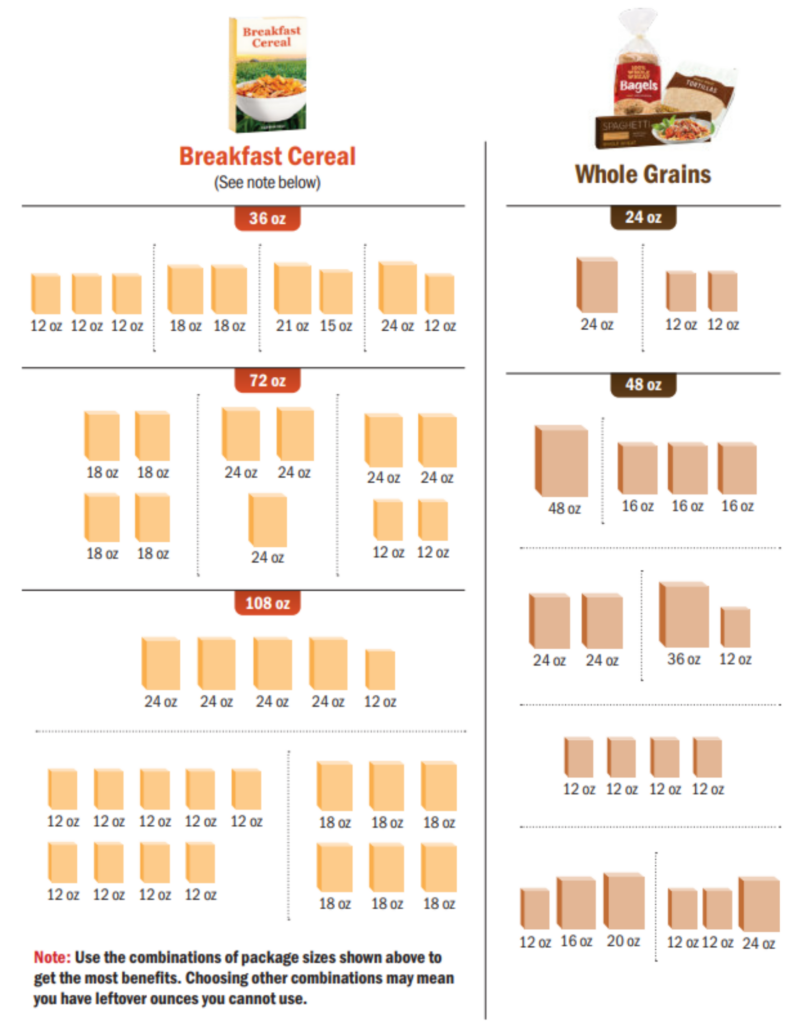 Whole grains, cheese, yogurt, cereal, tofu, and juice benefits appear on your WIC Food Benefits list in ounces. Use this guide to help you purchase the right amount of food issued in ounces to get the most from your benefits.